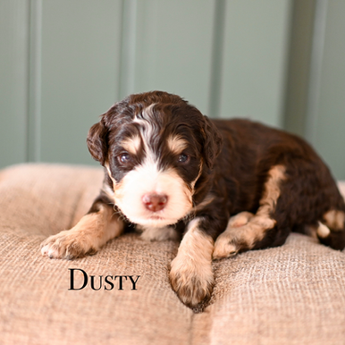 Marley is a F1 standard bernedoodle from our foundation Mama, Mazie. She is wonderful with all other animals and small children. She is extremely loyal and kind hearted.